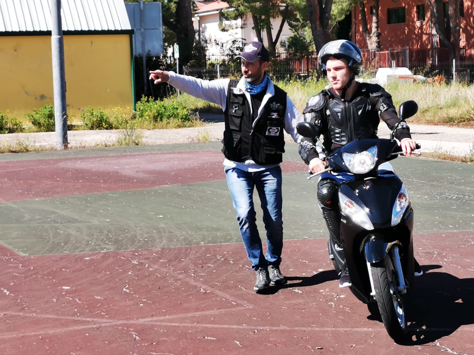 Sui ciclomotori Honda Vision 50 messi a disposizione dal nostro partner tecnico Motosalone Greco e con l’aiuto e la collaborazione dell’insostituibile Nino, gli allievi hanno avuto modo di provare su un circuito chiuso, allestito nel cortile dell’istituto, le nozioni apprese nell’incontro sulla teoria svoltosi in precedenza.
