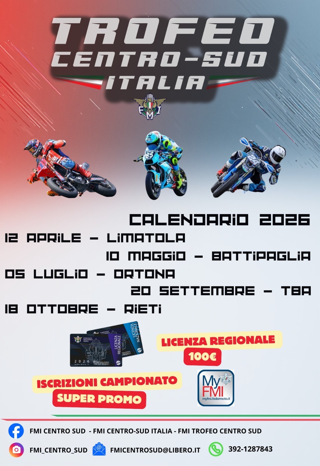 TROFEO CENTRO SUD 2026 PER LE CLASSI SUPERMOTO, PIT BIKE, MINI GP aperto a tutte le Regioni del Centro Sud.